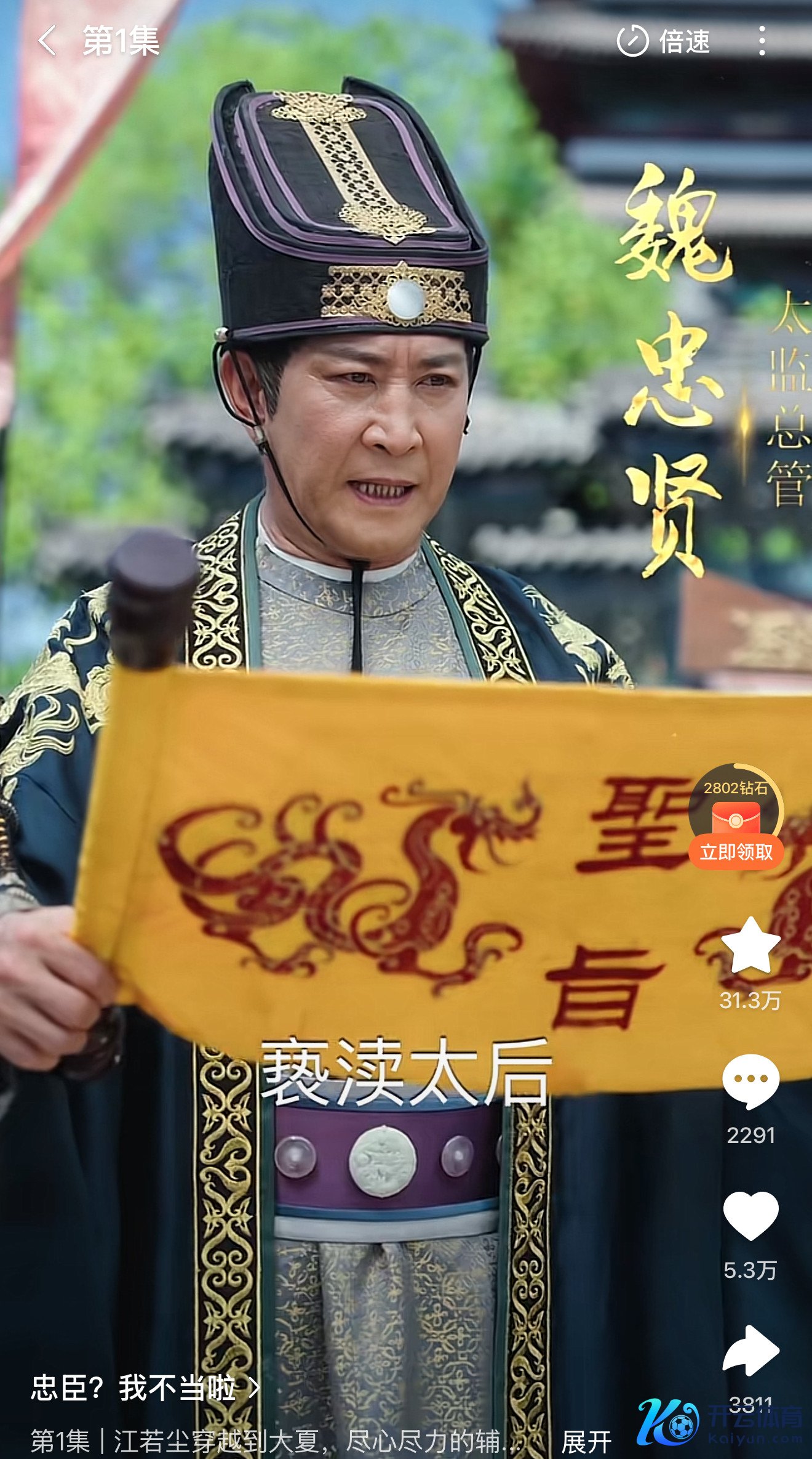 他是长剧短剧两手持,昨年上线的短剧《忠臣?我不妥啦》里,第一集第一个镜头出现的公公魏忠贤便是他演的。