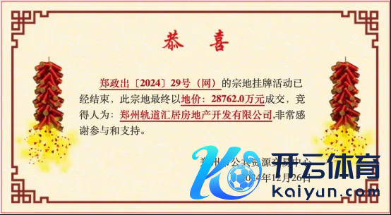 此前九游体育app(中国)官方网站,12月6日,郑州地铁集团旗下的郑州轨谈石桥房地产开导有限公司以3.7亿元的底价,摘得编号为郑政出〔2024〕25号(网)的郑州市金水区一住宅地块。