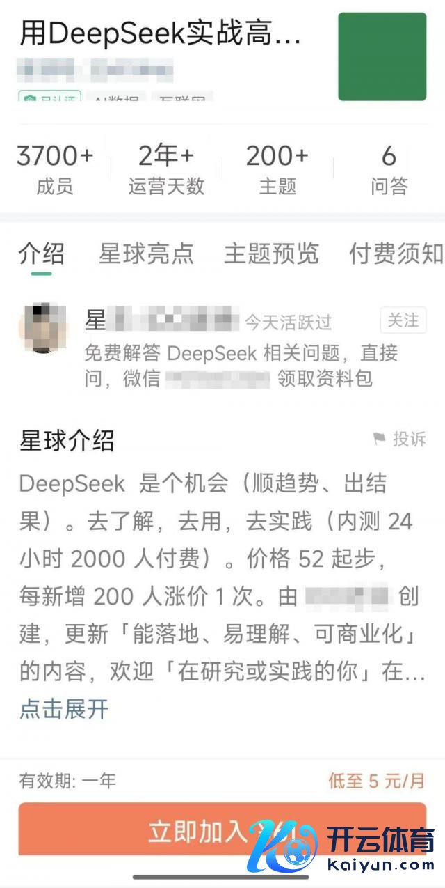 在付费常识社群"常识星球"上,记者搜索到跳动百个 DeepSeek 研究社群,基本骨子都是共享 DeepSeek 研究课程,会员收费从 50 元到 200 元不等。