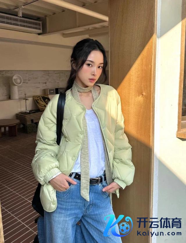 一件淡绿色的外衣,搭配白色内搭,仿佛春日里的一抹新绿。