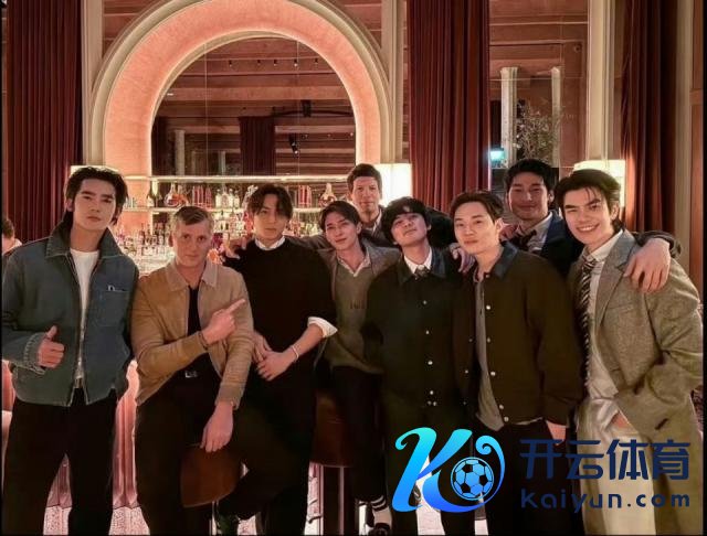 和刘宪华等其他品牌大使们一都合照,仍不忘摆出竖大拇指的标识性看成,真有种"在哪都是兵"的嗅觉。