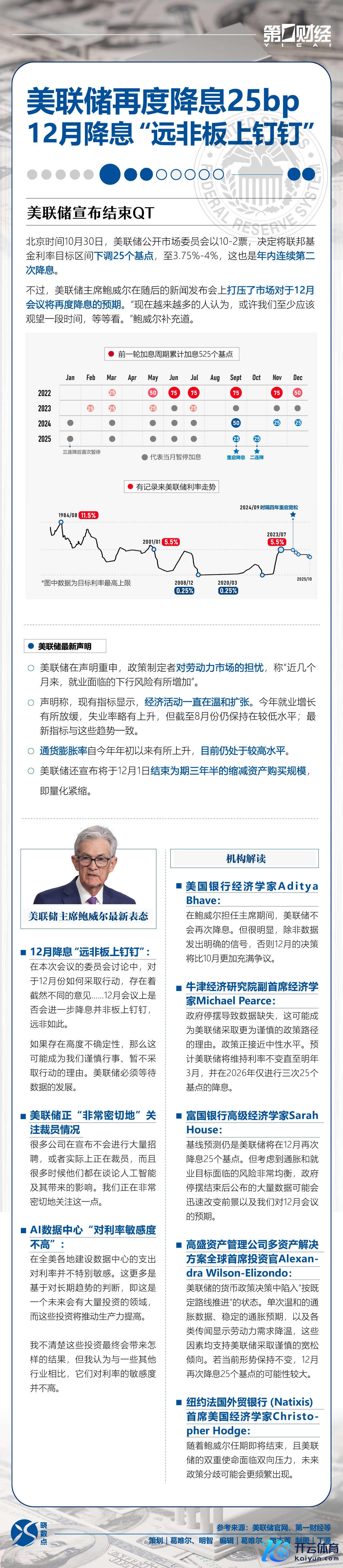 晓数点|好意思联储再度降息25bp现金九游体育app平台,机构如何解读?晓数点|好意思联储再度降息25bp,机构如何解读?