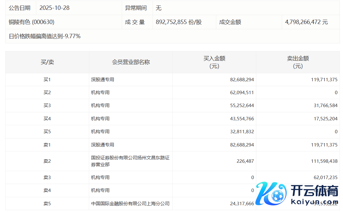 铜陵有色当天跌停,4家机构专用席位净买入1.44亿元铜陵有色当天跌停,4家机构专用席位净买入1.44亿元