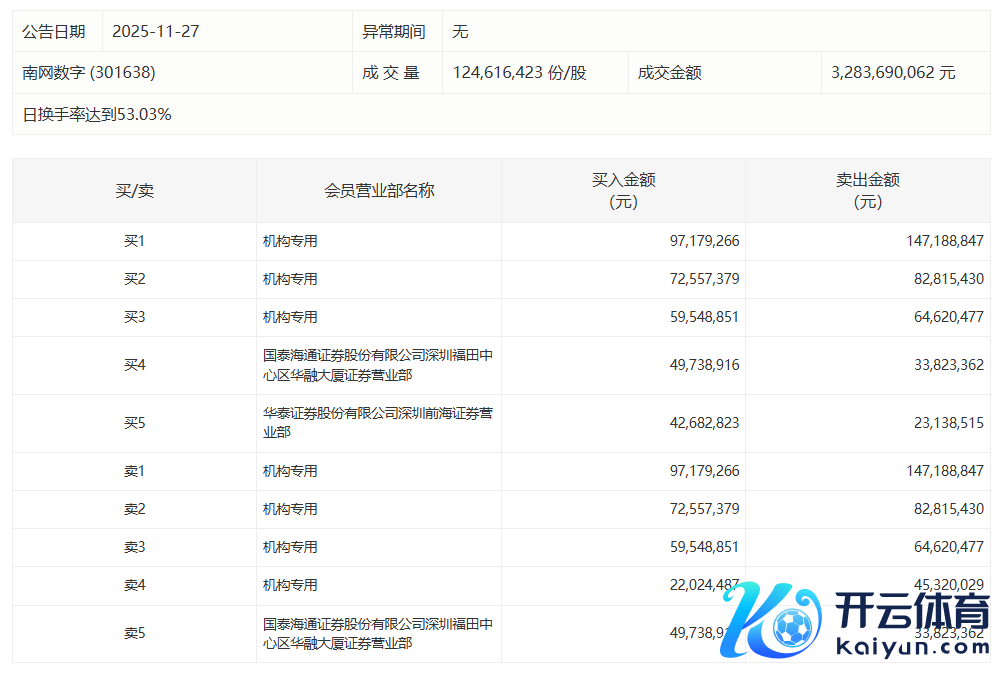 南网数字:全天换手率达53.03%,4机构悉数净卖出8863.48万元南网数字:全天换手率达53.03%,4机构悉数净卖出8863.48万元
