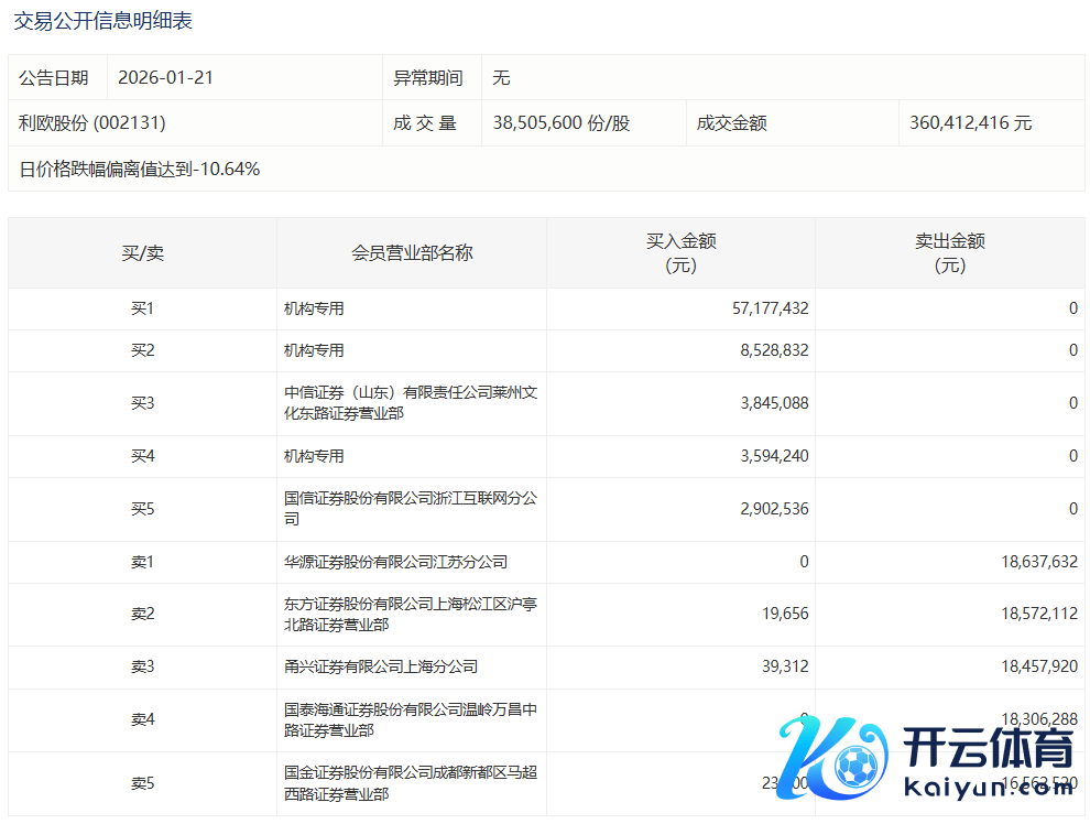 利欧股份当天跌停九游体育app娱乐,3家机构专用席位净买入6930.05万元利欧股份当天跌停,3家机构专用席位净买入6930.05万元