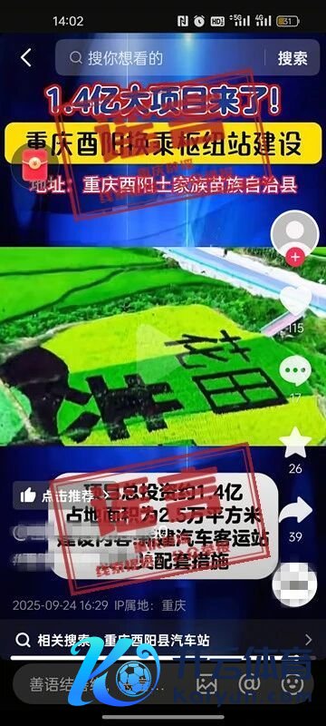近日,有网民在互联网平台发布信息称“1.4亿大形势来了,重庆酉阳换乘关键站竖立,新建汽车客运站及联系配套”,激发和蔼。经核实,网传信息系假话。